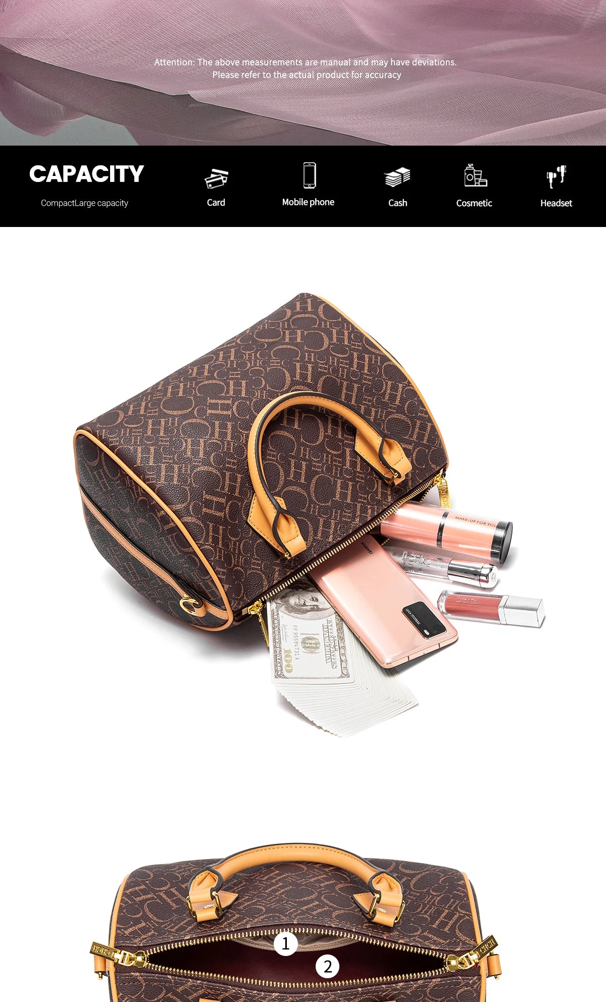 Versatile Carrying Options: Features a long shoulder strap for crossbody wear and sturdy handles for hand carrying.